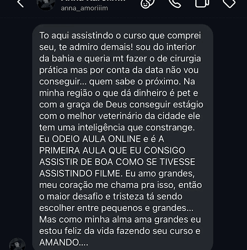Também iremos oferecer uma grande oportunidade inédita e imersiva, um encontro presencial que nunca foi oferecido antes para o mercado veterinário. Passaremos 90% do tempo entregando valor para você e construindo o seu plano prático de entrada na IATF e 10% do tempo apresentando essa oportunidade.